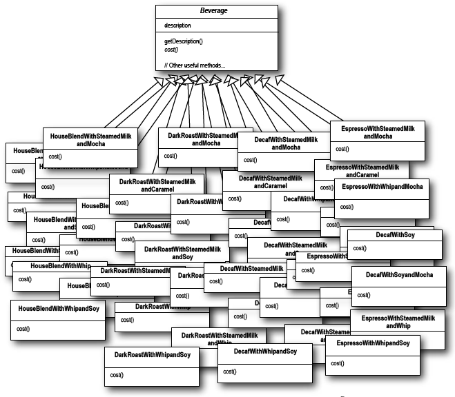 여러 기능들이 나뉘어있는 클래스를 만들기 위해 상속을 이용하여 확장한다면 너무 많은 클래스들이 생긴다.