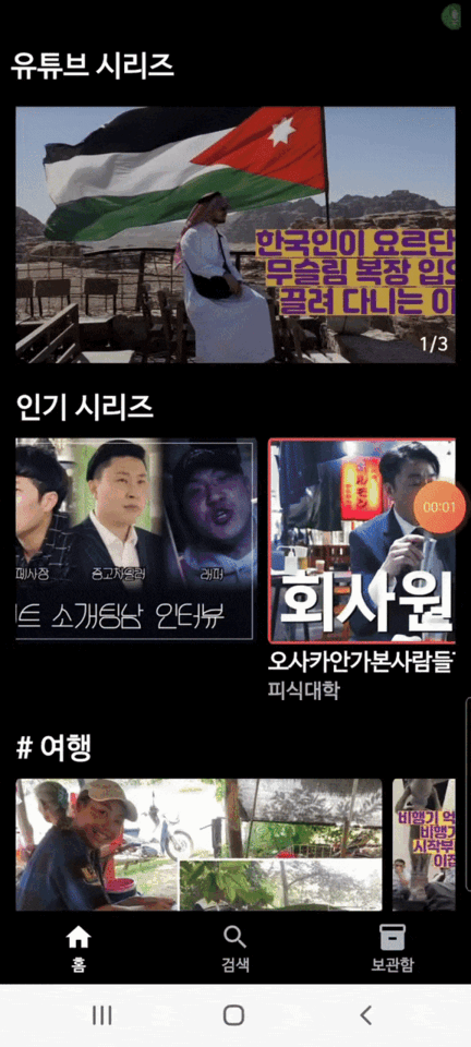 프로젝트의 홈 화면 입니다. 리사이클러뷰들이 모두 같은 뷰 타입의 아이템들을 가지고 있습니다.