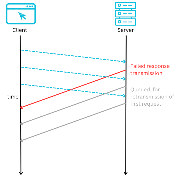 HTTP/1.1은 HTTP 파이프라이닝을 통해 응답을 기다리지 않고 여러 요청을 보낼 수 있도록 했습니다. 하지만 파이프라이닝에서는 “Head-Of-Line-Blocking” 문제가 발생했습니다. 이전 요청이 완료될 때까지 이후 요청이 기다려야 하며, 응답의 순서가 유지되어야 했기 때문에 이러한 방식이 효율을 떨어뜨렸습니다. 이러한 문제로 인해 많은 웹 브라우저에서 HTTP/1.1 파이프라이닝에 대한 지원이 점차 중단되었습니다.